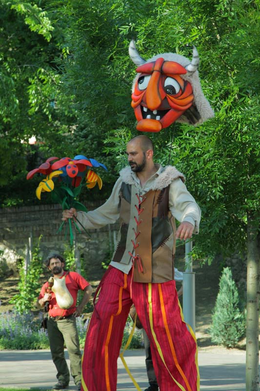 (outdoor play with stilts and giant puppets)
